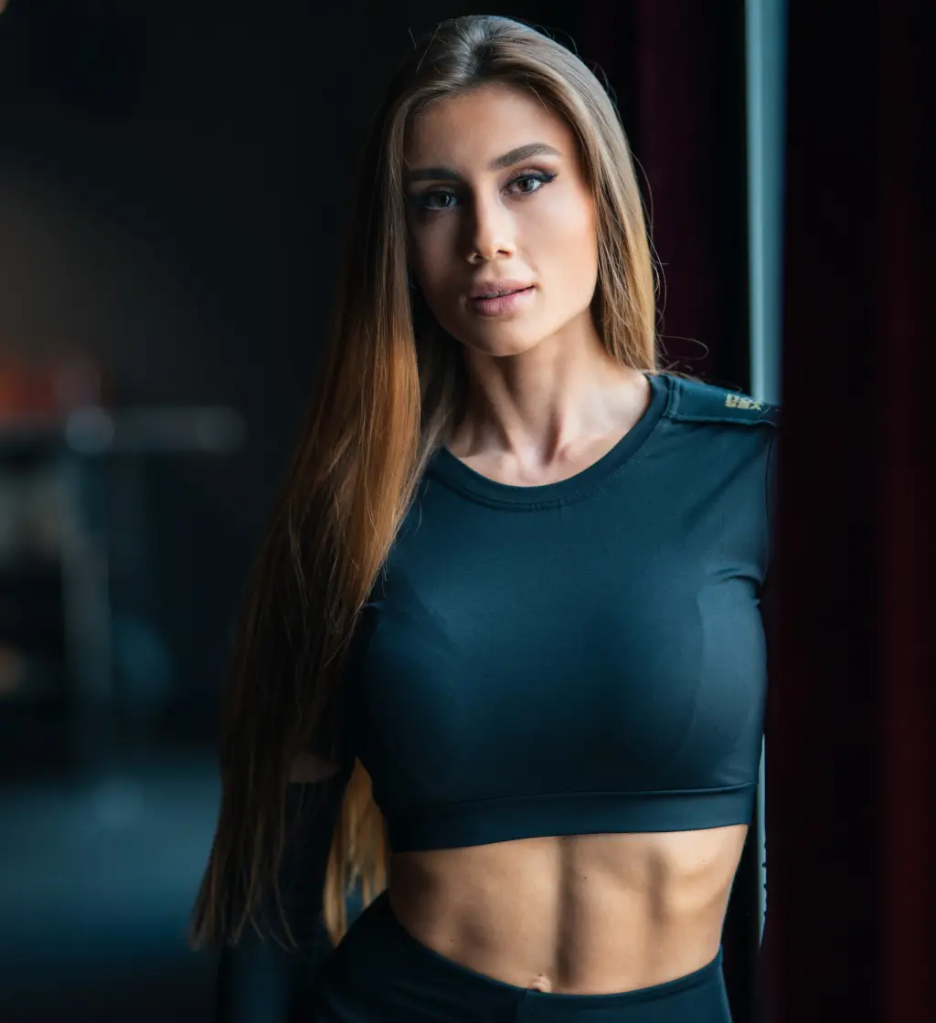 - Cropped cut – perfect for pairing with high-waist leggings or jeans